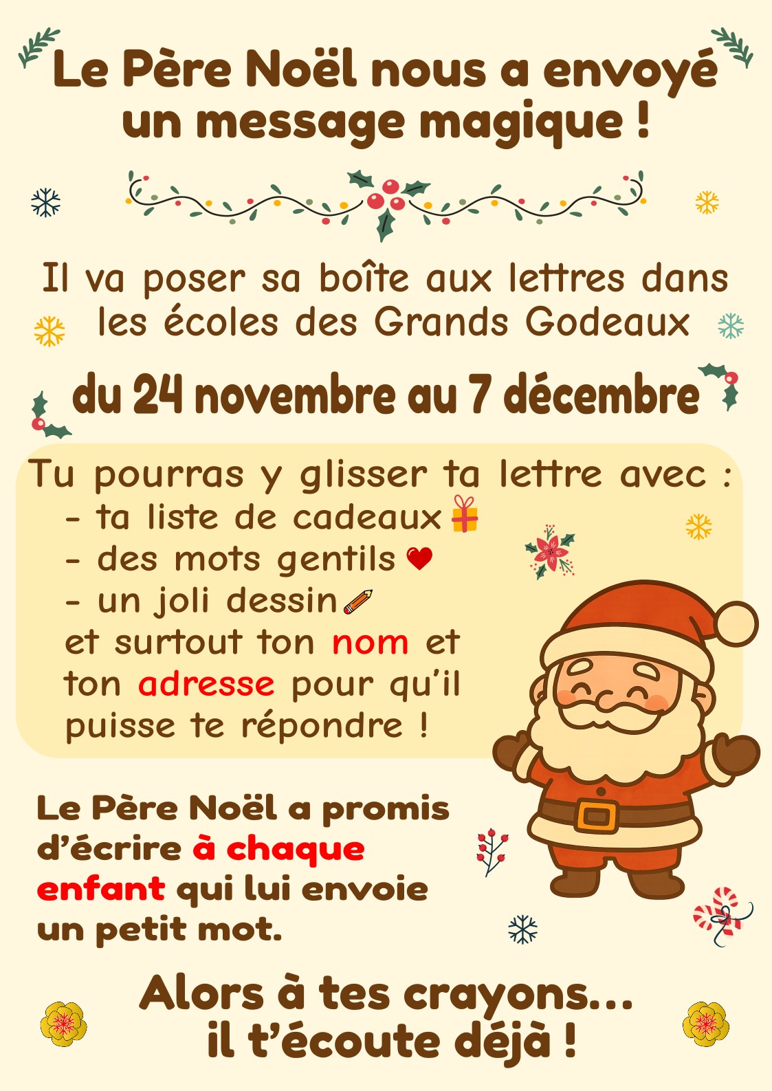Le Père Noël a un message pour les enfants des Grands Godeaux !