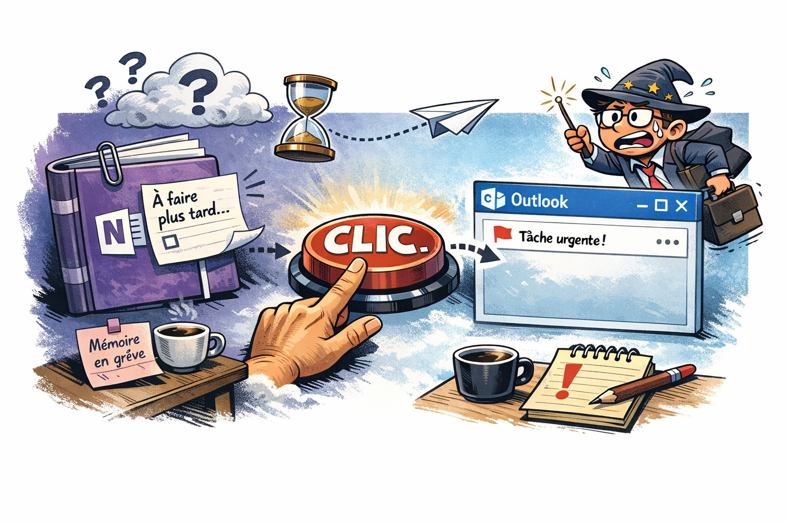 #ProductivitéDouce #OneNote #Outlook #Organisation #Microsoft365 #AstucesNumériques #HumourPro #MistyTips #DigitalSoftSkills #GainDeTemps