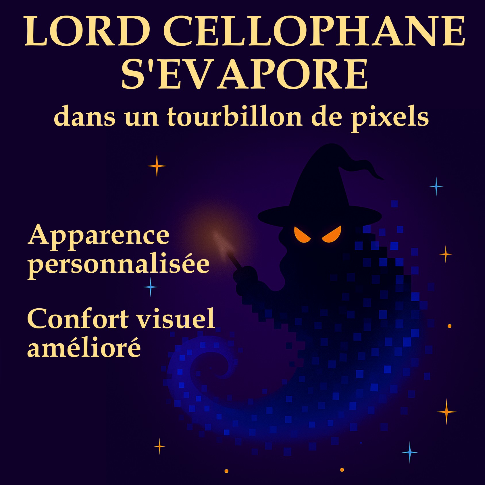 Dans un souffle pixelisé, une silhouette se dessine : Lord Cellophane apparaît.